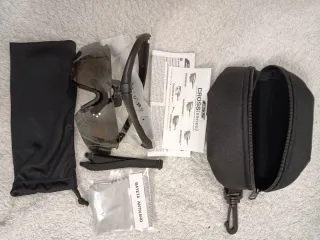 Set de gafas de protección ESS Crossbow, ideales para actividades al aire libre (paintball, airsoft...) Incluye: - Funda de transporte. - 2 Lentes intercambiables transparente y de sol. - Incluye bayeta antivaho. - Goma de sujeción. - Manual.