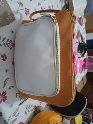 Neceser blanco y naranja con cremallera dorada