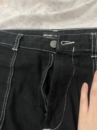 Pantalón vaquero negro con pespuntes blancos