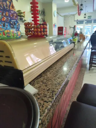 Vitrina de barra expositora, ideal para negocios de hostelería. - Diseño moderno y funcional. - Superficie de exposición de cristal. Le faltan las puertas corredizas
