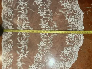 Manteletas falleras de batista con un bonito bordado y lentejuelas doradas.Ideales para estilo a l'antiga. Están sin estrenar Tamaño 110cm - Diseño floral. - Acabado con puntilla. - Adornadas con lentejuelas.