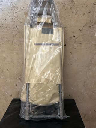 Carrito de la compra nuevo a estrenar de la marca Metaltex, modelo Aster. Es plegable y cuenta con ruedas para facilitar su transporte. - Color beige con puntos. - Asa gris. - Capacidad de 45 L.