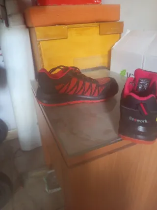 Botas de trabajo en color rojo y negro, talla 40. - Diseño deportivo y moderno. - Cierre con cordones.