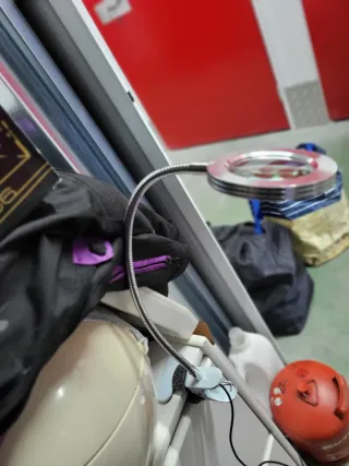 Lupa con un brazo flexible y luz LED incorporada para facilitar la lectura o el trabajo detallado. - Lente de aumento. - Brazo metálico flexible. - Pinza de sujeción.