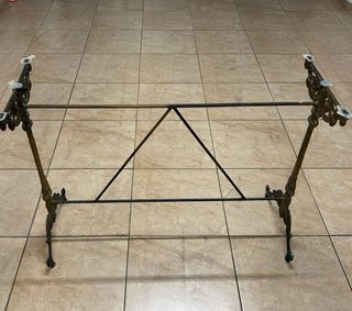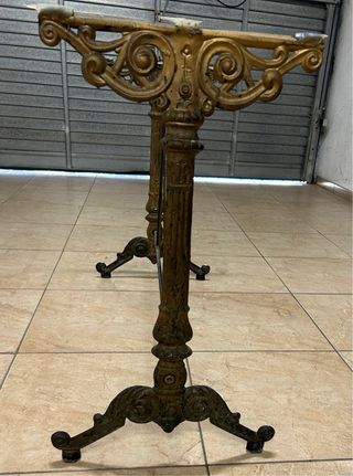 Base de mesa de hierro con un diseño robusto y elegante, ideal para bares o espacios con estilo industrial. - Estructura de hierro forjado. - Patas ornamentadas con detalles. - Diseño de soporte triangular para mayor estabilidad.