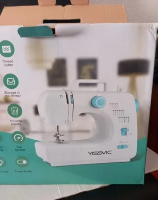 Máquina de coser compacta y portátil de la marca YISSVIC. Con muy poco uso - Almacenamiento en cajón. - Asa portátil. - Luz LED. - Botón de encendido.