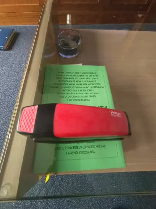 Grapadora de mesa de color rojo. - Diseño clásico. - Mecanismo de grapado.