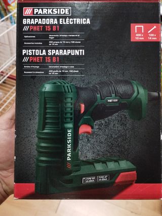 Grapadora eléctrica Parkside. - Modelo: PET 25 C3. - Color: Verde y negro.