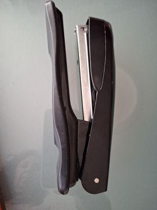 Grapadora de oficina en perfecto estado. No incluye grapas. - Resistente y duradera. - Mecanismo de grapado potente. - Base amplia y estable. - tope de papel ajustable Usada una vez