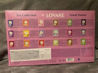 Set de 90 bolsitas de té de la colección Great Partea de Lovaré. Incluye 12 deliciosas variedades. - 90 tés variados (frutales, florales, clásicos...). - Preciosa caja rosa con diseño floral. - Ideal para regalar o darse un capricho. - Disponible en Wallapop. - Entrega en mano y envío disponible.