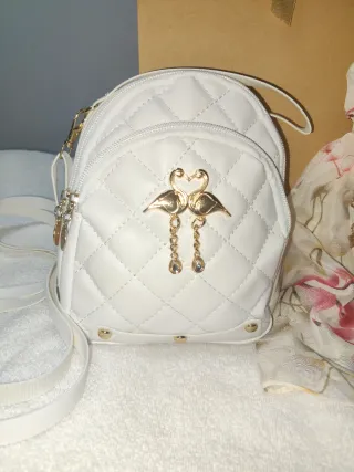 Conjunto de accesorios para mujer. - Bolso blanco acolchado con cadena dorada. - Monedero con cierre. - Juego de collar y pendientes con diseño de mariposa de acero inoxidable. - Pañuelo estampado floral. - Se envía en su bolsa de regalo.