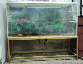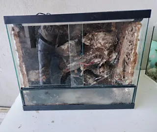 Se vende terrario con su mesa. - Ideal para reptiles o peces. - Incluye fondo decorativo.