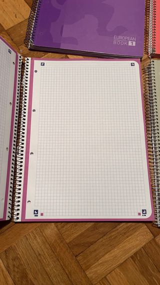 Conjunto de cuatro cuadernos Oxford European Book 1. - Cuaderno morado. - Cuaderno rosa. - Cuaderno fucsia. - Cuaderno gris.