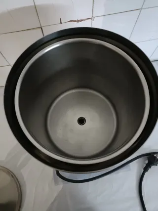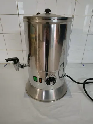 Calentador de leche de acero inoxidable con dispensador en muy buen estado.