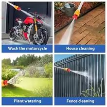 Hidrolimpiadora versátil con varios modos de uso. - Modo de alta presión para suciedad incrustada. - Modo de pulverización en abanico para áreas amplias. - Modo dedicado de pulverización en abanico para espuma (ideal para pesticidas). Voltaje del producto: 21V Potencia: 200W Resistencia del producto: 60/80 puntos Presión del agua: 50BAR, pico: 70BAR Distancia de pulverización: 7-10 metros Funciones del producto: lavado de autos, limpieza de pisos, riego de flores, baño de mascotas, pintura en aerosol, etc. 1.Batería de litio de alta capacidad: esta pistola de agua de alta presión está equipada con una batería de litio