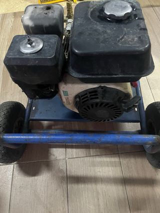 Hidrolimpiadora con motor de gasolina motor funcinando , pero habria que ponerles una pieza que se le a roto para que funciones el sistema de lavado a presion , cualquier pregunta y le explico . - Chasis metálico resistente. - Ruedas para facilitar el transporte. - Manguera y pistola incluidas.