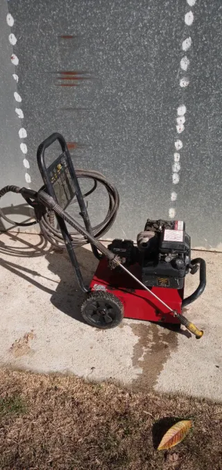 Hidrolimpiadora a gasolina, ideal para usarla donde solo llega agua o no se quiere tirar una alargadera, muy cómoda, arranque fácil, gasta poco, tiene 129h totales, para cuidar el motor se le ha cambiado el aceite ya un total de 8 veces, (no gasta aceite) tiene la bomba de presión prácticamente nueva, cambiada a las 125,6 horas. Con lanza con varias boquillas y manguera nuevas. Entrego la bujía original sin usar, la llave y el manual. Preferiblemente recogida en persona dada la dificultad que supone el embalarla. (No es marca karcher)