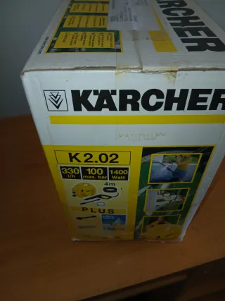 Hidrolimpiadora Karcher K2.02, ideal para limpieza exterior. Producto nuevo a estrenar. - Modelo: K2.02 - Caudal: 330 l/h - Presión máxima: 100 bar - Potencia: 1400 Watt - Manguera: 4m - Incluye accesorios PLUS (+50% POWER)