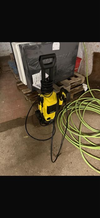 Hidrolimpiadora Karcher K3 en color amarillo y negro. Funciona perfectamente,tiene poco uso y 120 bares 1600 watios - Diseño compacto y robusto. - Asa integrada para facilitar el transporte. - Manguera enrollada para un almacenamiento ordenado.