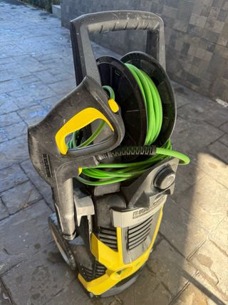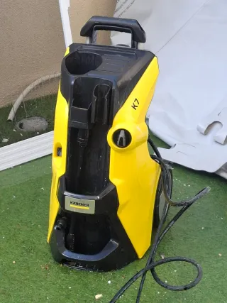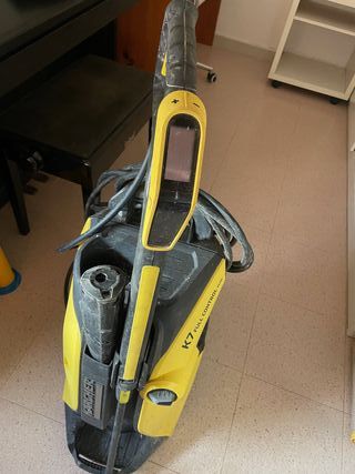 Hidrolimpiadora Karcher K7 Premium en color amarillo y negro. Incluye manguera enrollada. - Diseño robusto. - Asa de transporte integrada. la pistola a veces falla por eso pongo precio rebajado (pistola cuesta unos 60 euros) resto todo perfecto