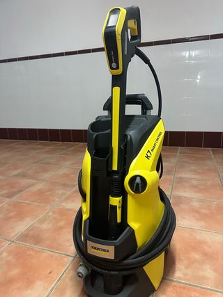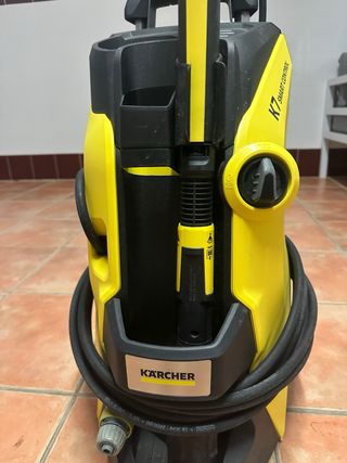 Hidrolimpiadora Karcher K 7 Premium Smart Control. - IMPORTANTE LEER. La goma tiene un desgaste por rozamiento pero funciona perfectamente, se vé en la ultima foto. Esto se soluciona al montar una goma nueva de forma diferente para que no provoque ese desgaste. - Está nueva sin usar. Solo se ha usado para comprobar que funciona. - Incluye pistola, lanza y accesorio limpiador de superficies. - Diseño en amarillo y negro. - Se puede controlar desde el móvil con una app. - Modo Boost: áreas muy sucias pueden limpiarse de forma eficiente y rápida con el modo Boost.