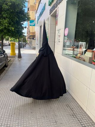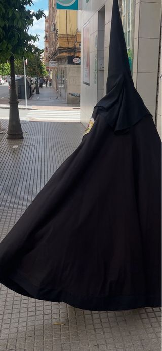 Túnica de nazareno de la Hermandad de la Sagrada Cena de Huelva. - Color negro. - Diseño tradicional.