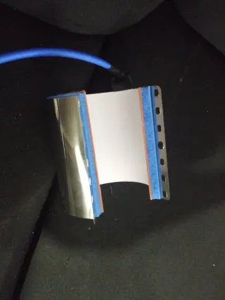 Resistencia para prensa de tazas, ideal para sublimación. - Material: Metal y goma. - Color: Plateado, azul y naranja. - Con orificios para ajuste.