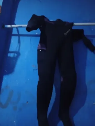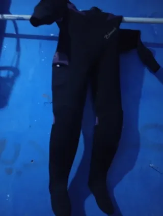 Traje de buceo completo de color negro con detalles en morado. Ideal para actividades acuáticas. - Material de neopreno. - Cierre frontal. - Bolsillo lateral.