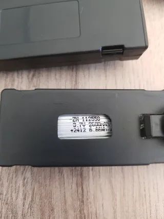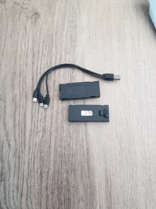 Conjunto de baterías y cargador para drones. - Incluye dos baterías. - Un cable cargador con múltiples conectores.