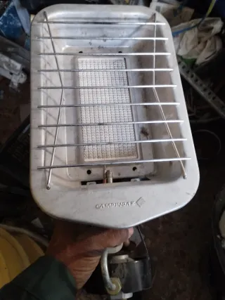 Estufa de gas portátil de la marca Campingaz. Ideal para exteriores o camping. - Diseño compacto y ligero. - Parrilla metálica superior. - Encendido piezoeléctrico.