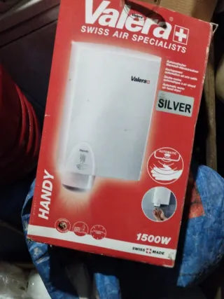 Secador de manos Valera Handy plateado. - Potencia de 1500W. - Diseño automático. - Fabricado en Suiza.
