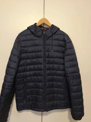 Chaqueta acolchada con capucha. - Cierre de cremallera. - Bolsillos laterales con cremallera. - Cordones ajustables en la capucha.