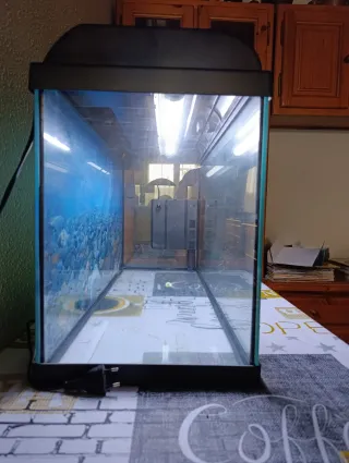 Acuario listo para usar, ideal para peces. - Incluye filtro. - Calentador integrado. - Diseño moderno. - Oxigenador - Tierra Medidas: 38cm de Acho 40cm de alto 26cm de fondo