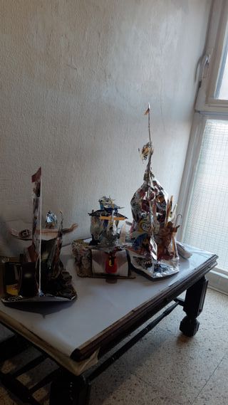 Pieza de arte abstracto, creada a mano con diversos materiales. - Diseño único y original. - Colores vibrantes y texturas interesantes.