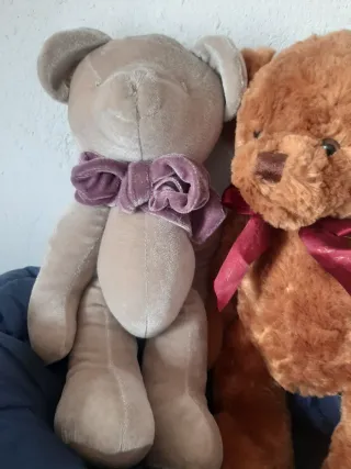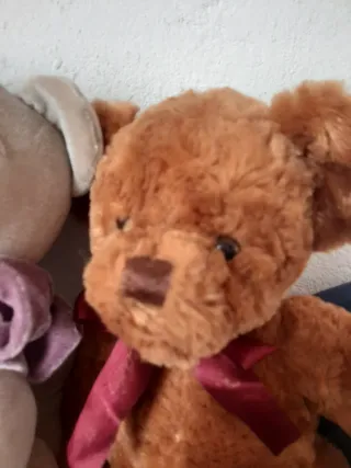Adorable oso de peluche de color marrón, perfecto para abrazar. Lleva un bonito lazo. - Material suave y esponjoso. - Lazo de color burdeos.