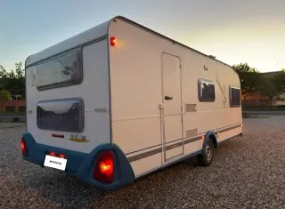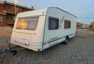 Caravana Blue Line en buen estado, lista para tus escapadas. - Diseño exterior blanco con detalles azules. - Ventanas amplias para luz natural. - 5/6 plazas - Puerta de acceso lateral. - Del año 2001 - Documentación al día,ITV recién pasada - Incluye avance con algún desperfecto - MMA: 1100kg