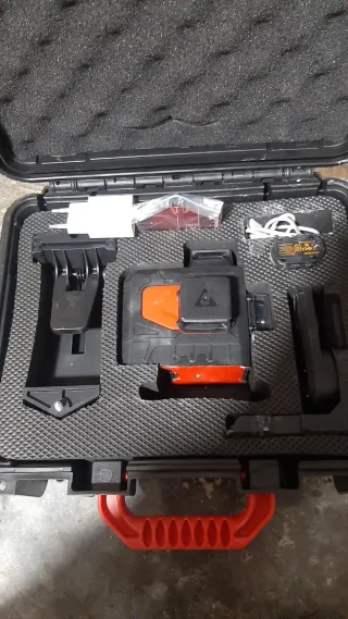Se vende nivel láser de 360 grados, ideal para trabajos de construcción y medición. Incluye su maletín para transporte y protección. - Maletín de transporte con interior acolchado. - Soporte para el nivel láser. - Cargador y accesorios.