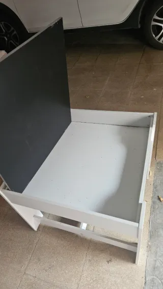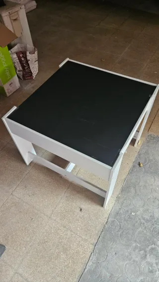 Mesa de diseño sencillo y funcional, pensada para los más pequeños. Su superficie negra tipo pizarra permite dibujar y escribir. - Estructura de madera lacada en blanco. - Tablero superior negro para tizas o rotuladores de pizarra.