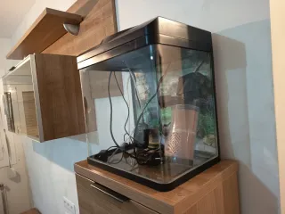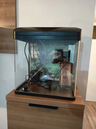 Acuario listo para usar, ideal para peces. - Incluye filtro. - Calentador integrado. - Diseño moderno. - Oxigenador - Tierra