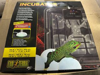 Incubadora de huevos exo terra en perfecto estado. Es negra y tiene una pantalla digital. - Capacidad para muchos huevos. - Temperatura regulable. - Luz incorporada.
