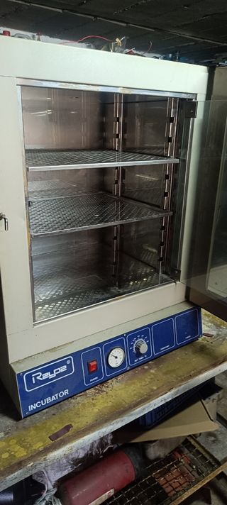 Incubadora de la marca Raypa, en buen estado. Ideal para laboratorio o proyectos científicos. - Capacidad para varias bandejas. - Control de temperatura preciso. - Puerta de cristal para visualizar el interior. - Estructura metálica resistente.