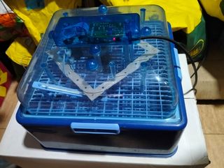 Incubadora de huevos, prácticamente nueva. Ideal para incubar huevos de forma eficiente. - Capacidad para varios huevos. - Incluye bandejas y rejillas. - Estructura de plástico resistente y azul.