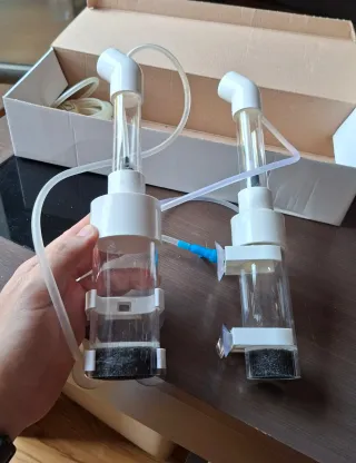 Set de dos incubadoras para acuario. Buen estado. - Fabricadas en plástico blanco y tubo transparente. - Incluyen tubos de conexión y ventosas para su fijación.