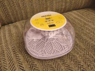 Incubadora de huevos con muy poco uso. - Diseño transparente y blanco. - Fabricada en plástico resistente.