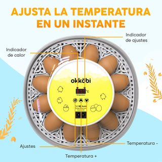 🌡️ Control preciso de temperatura: Nuestras incubadoras de huevos automaticas cuenta con un panel de control LED que permite monitorear y ajustar la temperatura, garantizando las condiciones óptimas para la incubación. Su sistema avanzado incluye salidas de aire para distribuir el calor de manera uniforme y evitar el flujo de aire directo sobre los huevos, aumentando la tasa de eclosión. 💦 Control automático de humedad: Mantén los niveles perfectos de humedad con la Okkobi M12. Rellena la botella lateral sin abrir la tapa, preservando el ambiente interno y evitando interrupciones en el proceso de incubación. Esta incubadora automa