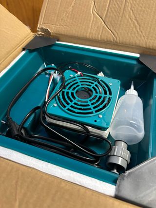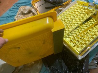 Incubadora de huevos de la marca Ansonic. - Diseño compacto y funcional. - Ventana para observación. Incubadora artesanal preparada con bandeja de huevos de codorniz en perfecto estado con resistencia de gomas para su protección con un buen porcentaje de incubación
