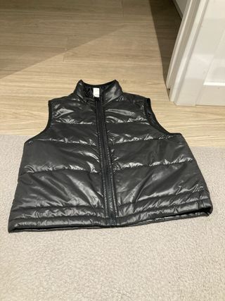 Chaleco negro de estilo básico, ideal para añadir una capa extra de abrigo. - Diseño acolchado. - Cuello alto. - Cierre de cremallera frontal.