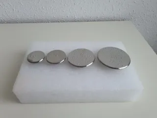 Set de electrodos resistivos tipo Indiba. Son de material metálico y tienen un diseño circular. - Incluye 4 electrodos de diferentes tamaños: 6,5 cms, 5,5 cms, 4 cms y 3,5 cms.