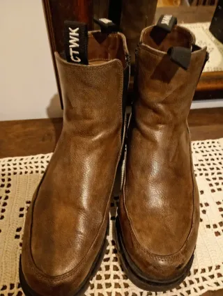 Botas de cuero marrón, talla 38. Tienen un diseño moderno y son cómodas. - Material exterior de cuero. - Tiradores para facilitar su puesta. - Cremallera lateral.