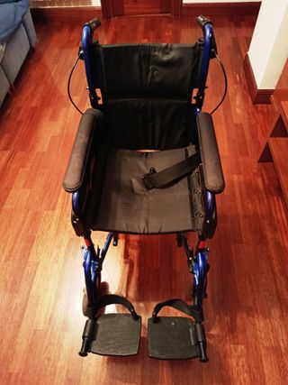 Se vende silla de ruedas plegable en color azul, junto con un chubasquero.Comprados hace año y medio por 550 euros, el chubasquero usado 2 veces. - Ancho del asiento: 46 cm - Altura del asiento al reposabrazos: 50 cm - Altura total: 93 cm